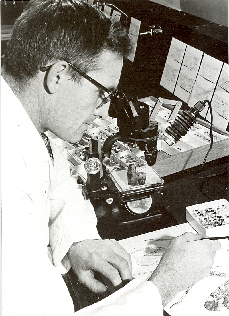 Arthur Robinson Brooks in his biosystematics laboratory (Saskatoon - 1950)